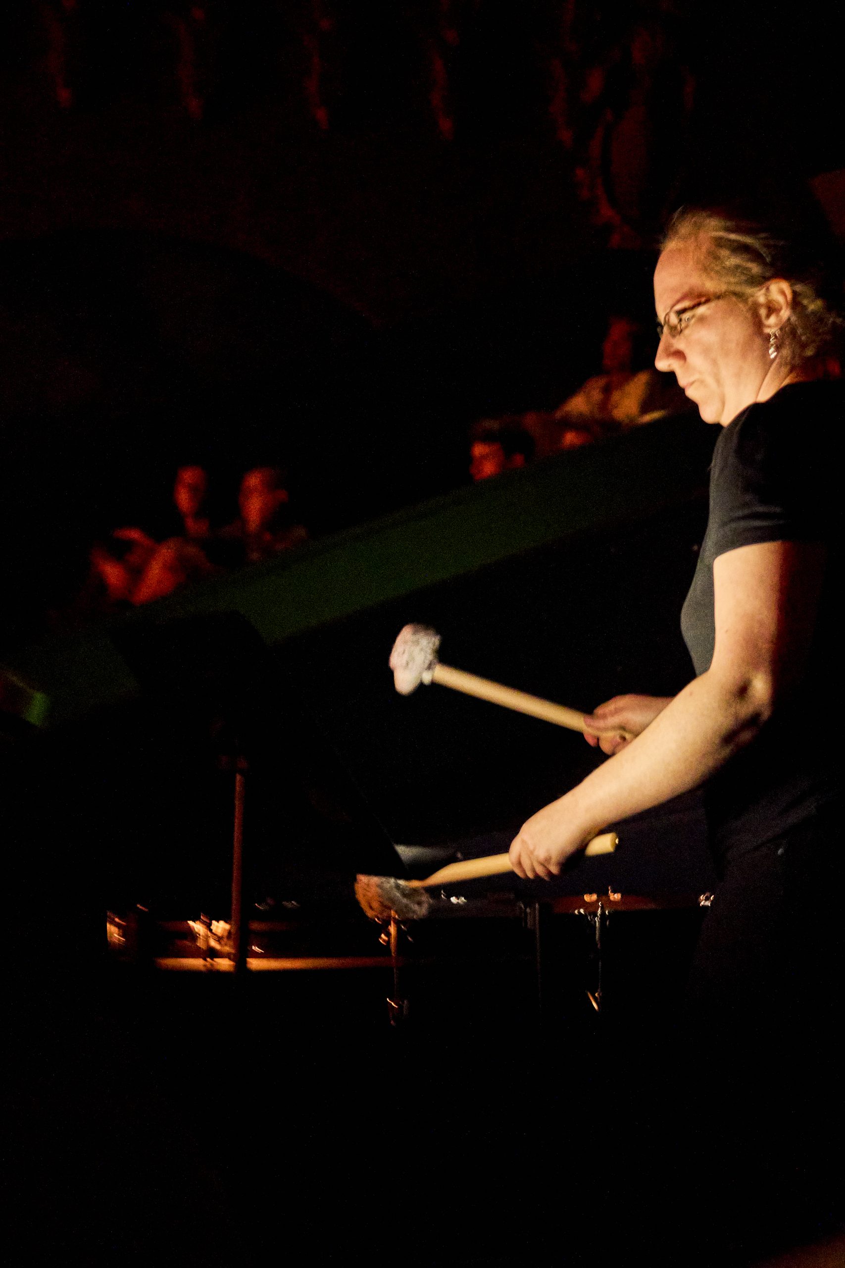 Night 3 opened with Norwegian composer Kristine Tjøgersen‘s Piano Piece, a work for piano, electronics, and live camera using recordings of a spruce forest on the south coast of Norway performed by pianist Ellen Ugelvik and visual artist Evelina Dembacke. Composer/harpist Zeena Parkins and percussionist William Winant followed with Parkins’ Modesty of the Magic Thing, based on Jay DeFeo’s series of drawings Seven Pillars of Wisdom and Lou Harrison’s American Gamelan tuning. We closed with the world premiere of a new choreographed work by Nancy Karp set to composer James Tenney‘s 1975 piece Three Pieces for Drum Quartet.