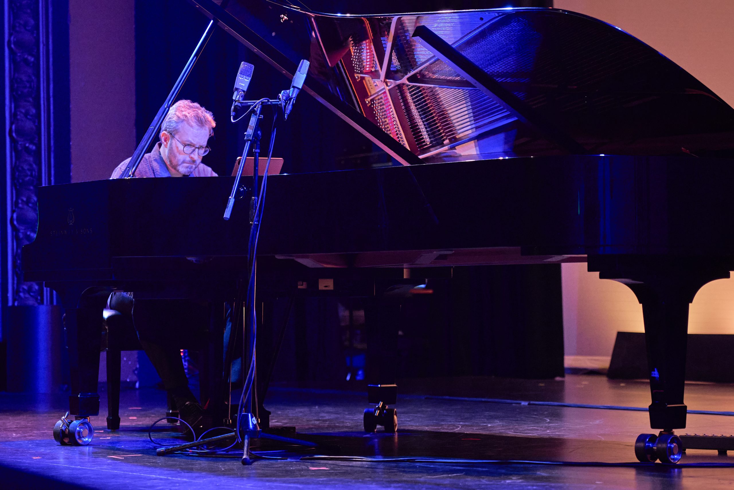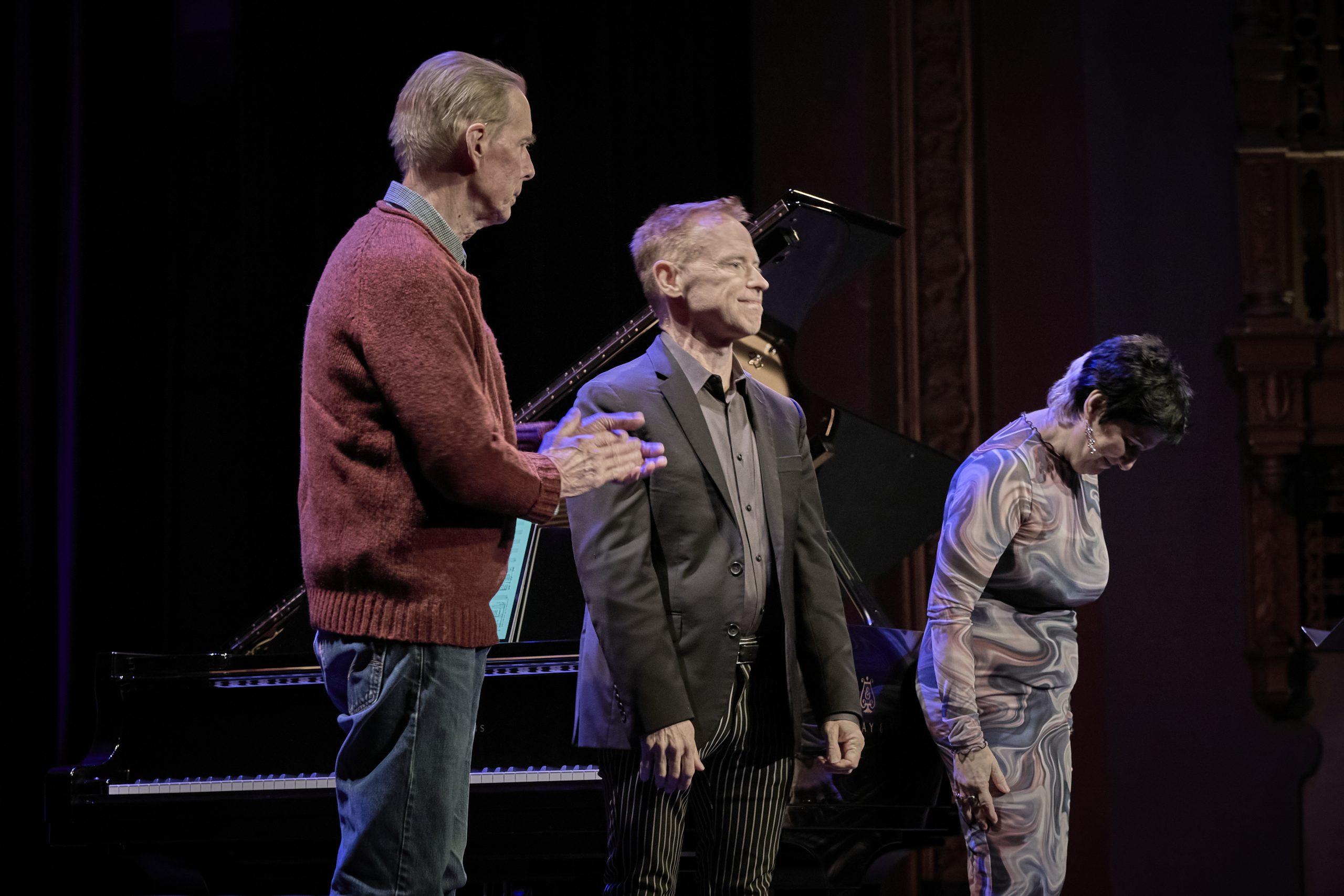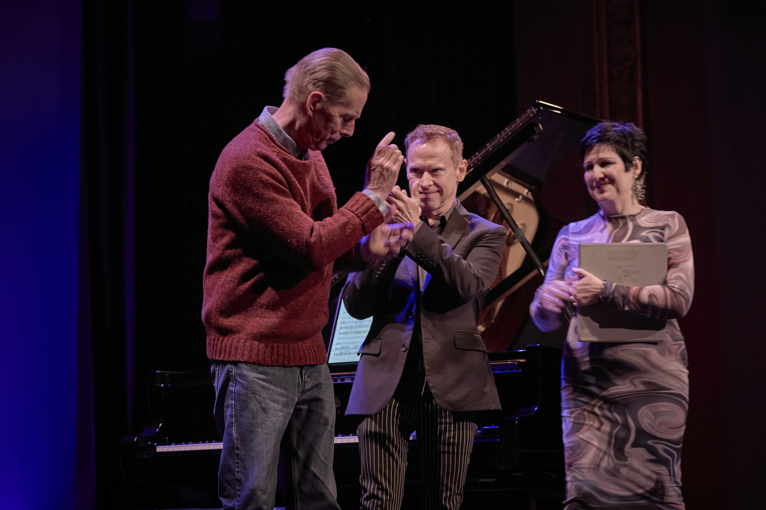 On Night 2, composer Samuel Adams presented a set of solo and chamber pieces performed by Friction Quartet, violinist Helen Kim, percussionist Haruka Fujii, and pianists Conor Hanick and Sarah Cahill. Adams’ piece commissioned by Cahill, which received its world premiere, is a tribute to his mentor Ingram Marshall (1942–2022), who was also represented on the program with a performance of Dark Waters for English horn by Libby Van Cleve.